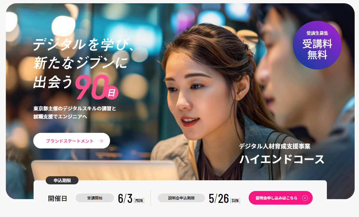 また、「デジタル人材育成支援事業(ハイエンドコース)」専用サイトをオープンし、第一期受講生募集を2024年4月30日(火)より開始いたします。