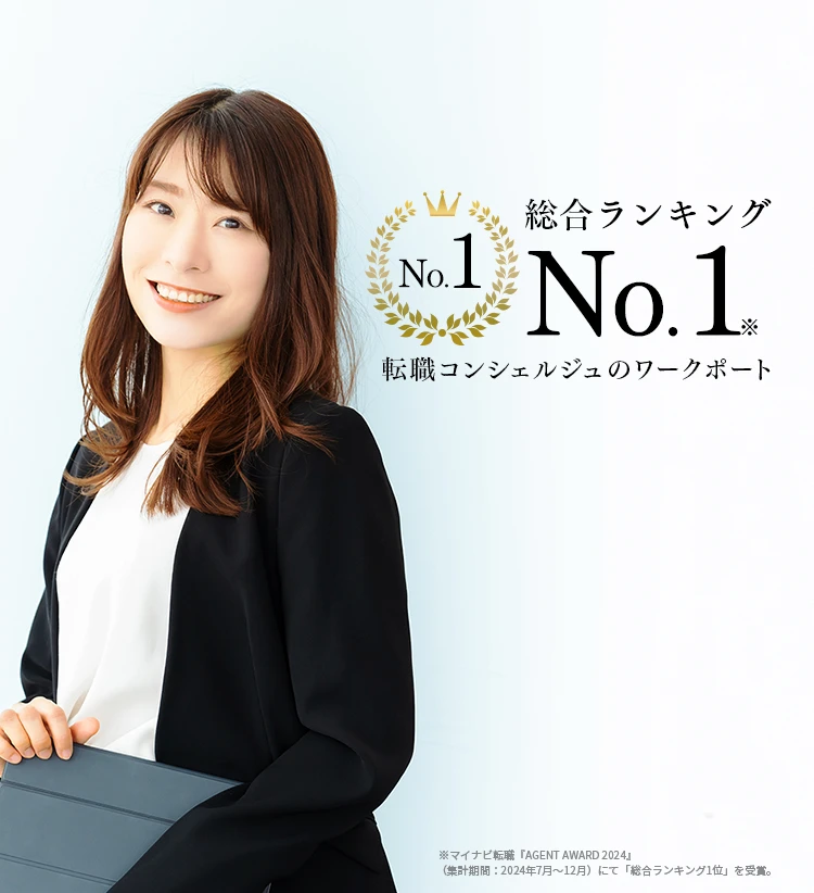 - ワークポートは総合ランキングNo.1の実績を誇る転職エージェント。業界や職種に精通したプロの転職コンシェルジュの経験値と自社開発のマッチングシステムを掛け合わせることで、これまでにない高精度のマッチングを実現します。※マイナビ転職『AGENT AWARD 2024』(集計期間:2024年7月~12月)にて「総合ランキング1位」を受賞。